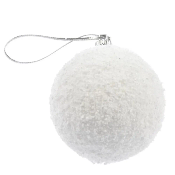 Prezentujemy komplet oszronionych, białych bombek. Każda z nich osiąga średnicę 6 cm a ich liczba w jednym pakowaniu wynosi 6 sztuk.