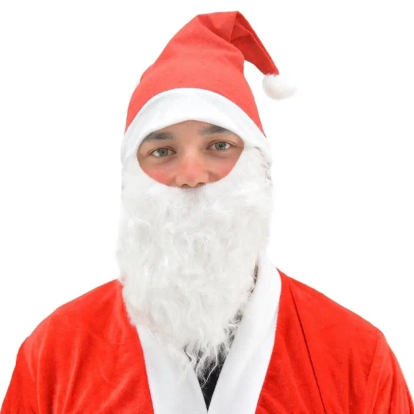 W naszej ofercie znaleźć można część charakterystycznego stroju Mikołaja. Mamy czapkę o rozmiarze: 36,5 x 29 cm. Dodatkowo, dołączona jest do niej broda, która ma długość: 25 cm.