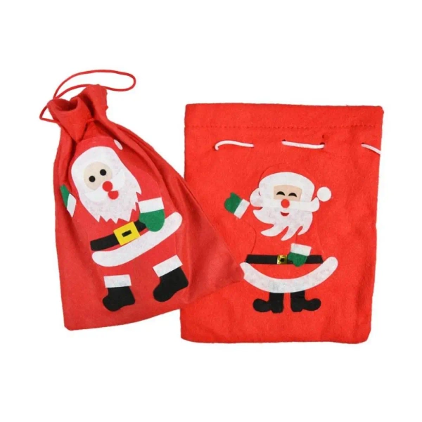 \n\nStylowy worek dekoracyjny w typowo świątecznym kolorze czerwonym, będzie przykuwał wszystkie spojrzenia. Został ozdobiony aplikacją przedstawiającą postać Mikołaja na swojej przedniej stronie. Uzupełnia je sznurek ściągający, który umożliwia bezproblemowe zamykanie worka. Worek ten z powodzeniem posłuży jako atrakcyjne opakowanie dla prezentów lub jako nietypowy element dekoracyjny. Jego wymiary wynoszą 26x20 cm.