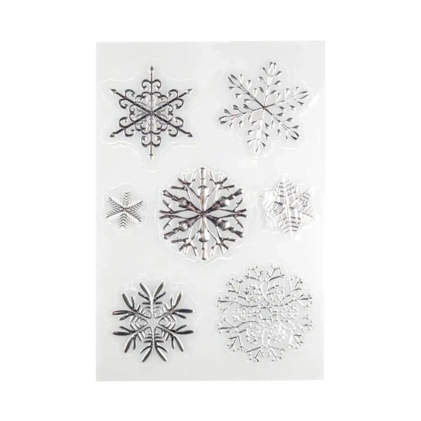 Ponadprzeciętny charakter zimowej atmosfery w domu możemy osiągnąć dzięki arkuszowi naklejek nawykonywanych w metalicznym stylu, wzorowany na motywach śnieżynkowego zaśnieżenia. Doskonale sprawdzają się jako element dekoracyjny na lustrach czy oknach. Prezentowany arkusz ma wymiar 17x25 cm.