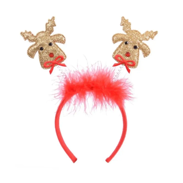 Opaska pełna świątecznego blasku z uroczo udekorowanymi reniferami, wykonanymi z brokatowego materiału. Renifery są precyzyjnie stworzone o wielkości 8 cm, które dodadzą każdej stylizacji niepowtarzalnego klimatu. Całkowity wymiar tego świątecznego dodatku wynosi 25,5 cm, a jego szerokość to 11 cm.