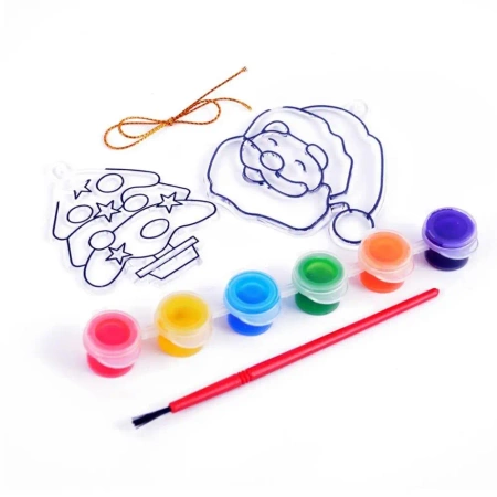 Ten zestaw do malowania skierowany jest do dzieci. Znajduje się w nim para witraży, pędzel, sześć kolorowych farbek oraz złote sznurki, które służą do zawieszenia. Każdy z witraży mieści się w granicach 5-7 cm.