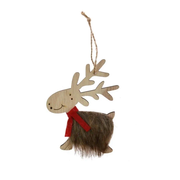 Przedstawiamy Państwu drewnianego renifera z miękkim futerkiem. W ofercie dostępny jest pojedynczy produkt. Ten uroczy element dekoracyjny ma przybliżone wymiary 9 cm.