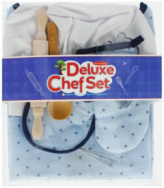 W skład kitu wchodzi fartuch, rękawica kuchenna, stojak na garnki, czepek, wałek do ciasta, drewniana łyżka, zestaw 4 foremek do wypieków oraz trzepaczka. Elementy te zostały wykonane z tkaniny, drewna a także metalu.