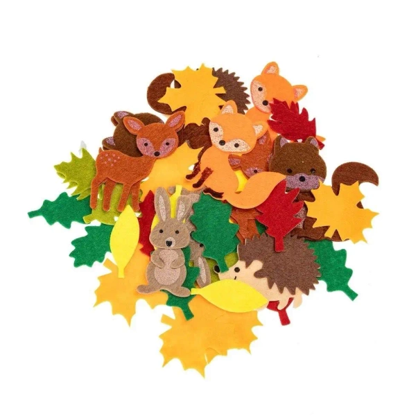 Kolorowe naklejki wykonane z filcu, które wprowadzą do Twojego wnętrza atmosferę jesienną. Zestaw zawiera 35 elementów, które są idealne do ozdobienia różnych przedmiotów.