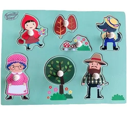 Przedstawiamy zabawkę edukacyjną - układankę z motywem dobrze znanej wszystkim bajki "Czerwony Kapturek". Układanka jest tak zaprojektowana, że wszystkie puzzle są dokładnie dopasowane do miejsc na specjalnej tablicy.