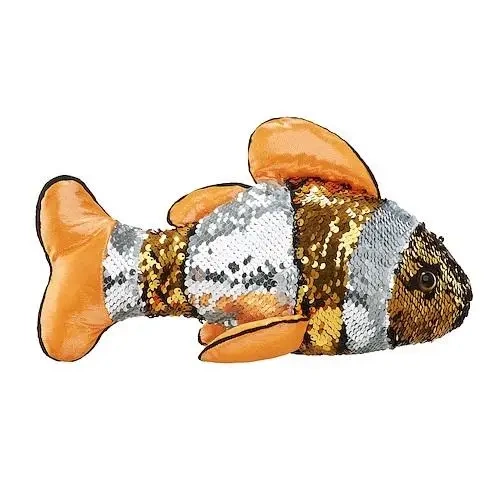 Zachwycająca pluszowa ryba ozdobiona cętkami z cekinów to doskonały prezent dla każdej miłośniczki pluszowych zabawek. Wyrzeźbiona z niezwykłą dbałością o detale, ta pluszowa rybka jest zarówno miękka i cudownie pluszowa, jak i efektownie błyszcząca.