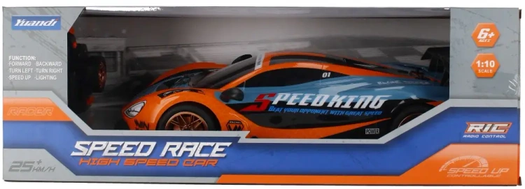 Zestaw zawiera samochód wyścigowy i pilot do zdalnego sterowania