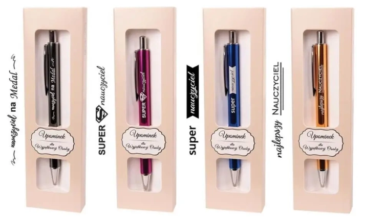 Ten metalowy, automatyczny długopis CARLOS z nadrukiem jest idealnym upominkiem na różne okazje. Produkt jest dostarczany w atrakcyjnym opakowaniu prezentowym. Długopis CARLOS wyposażony jest w wymienny wkład z niebieskim atramentem.