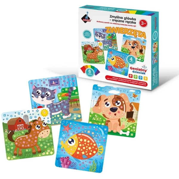 Zabawa w naklejanie dla najmłodszych - Genialny dzieciak. Zmyslna główka. Zwierzęta.