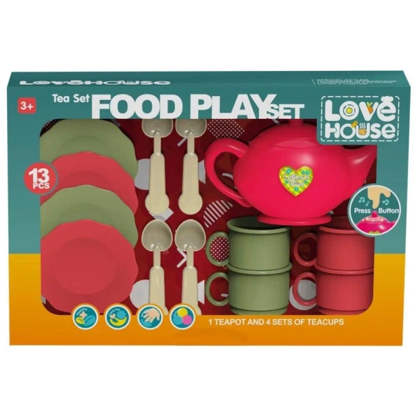 Zestaw do herbaty Askato to kreatywna zabawka, która składa się z czternastu elementów: 4 uroczych filiżanek, 4 urokliwych talerzyków, 4 łyżeczek idealnych dla małych rączek oraz wyjątkowego czajniczka, który rozświetla się i gra melodię.
