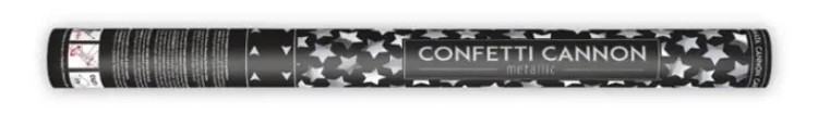 Srebrna tuba wypełniona metalicznymi gwiazdkami o długości 60 centymetrów