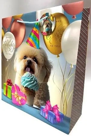 Opis produktu: Matowa torebka ozdobna o wymiarach 35x37x12cm z motywem urodzinowego psa GB23163
