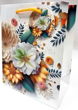 Torebka ozdobna matowa 18x23x10cm białe kwiaty - Fresh