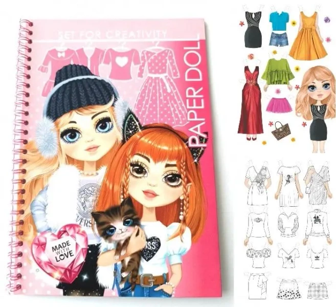 Zabawka, która oferuje nieograniczone możliwości kreacji. W zestawie znajdują się dwie papierowe lalki, przeznaczone do "ubierania". Użytkownik może tworzyć dla nich stroje z elementów, które wcześniej sam wycina i koloruje według swojego uznania. Elementy garderoby są łatwe do "założenia" na lalki - wystarczy zagiąć w odpowiednich miejscach specjalnie ozdobione fragmenty papieru.