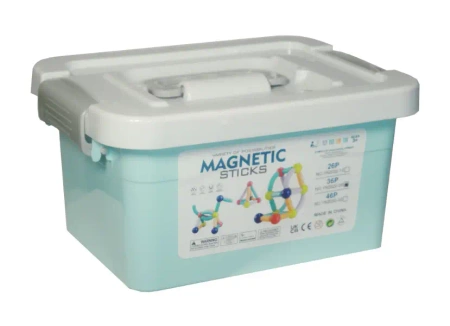 Magnetyczna układanka, jaką jest ten zestaw, pozwala dziecku na tworzenie rozmaitych figur przestrzennych. Składa się ona z 36 części.