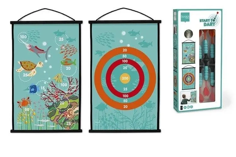 Zestaw "Start to Dart - Rafa Koralowa" to dwustronna tarcza z rzutkami, idealna do zabawy dla młodych fanów rzutek. Charakteryzuje się uroczym designem z rafą koralową, który zachęca do zabawy. "Start to Dart" to nie tylko świetna rozrywka, ale też bezpieczna gra dla dzieci.