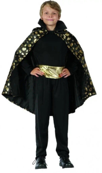 Strojik dla małego wampira jest wykonany z elastycznego poliestru o wysokiej jakości. Peleryna w klasycznym, czarnym kolorze jest dodatkowo ozdobiona złotymi czaszkami i zapięta na rzepy. Wykonano ją z tkaniny, która nie uczula i jest łatwa do czyszczenia. Do stroju dołączono też sztywny kaptur w tym samym, czarnym odcieniu.