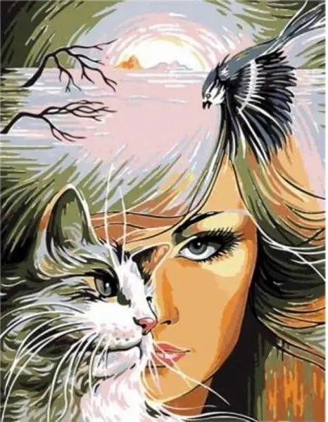 Diamentowa mozaika kobieta z kotem NO-1006773 - Norimpex