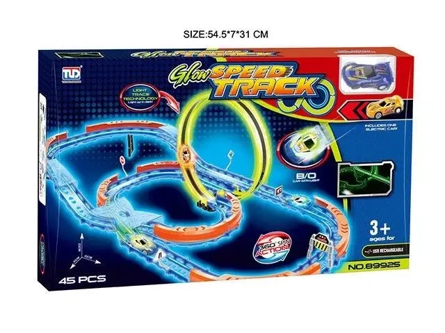 Zabawka składa się z kilku modułów, które można ze sobą dowolnie łączyć, tworząc niepowtarzalne kombinacje. Dzieci mogą budować zjeżdżalnie, zakręty, a nawet całkiem nowe trasy! W zestawie znajduje się jedno autko, ale można dokupić dodatkowe, aby zwiększyć emocje podczas zabawy.