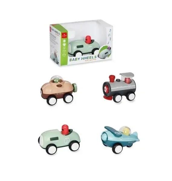 Pierwszy pojazd (13 cm) to idealny wybór dla małego fana motoryzacji. Gwarantuje wiele godzin kreatywnej zabawy i radosnej rozrywki. Auto doskonale sprawdzi się podczas domowych wyścigów, w ogrodzie czy na plaży. Wyróżnia się doskonałym wykonaniem, lekką konstrukcją, zwrotnością i brakiem ostrych krawędzi. Są dostępne 4 modele (dwa egzemplarze każdego): samolot, lokomotywa, samochód, łódź podwodna. Każdy pojazd wyposażony jest w światełko, elementy muzyczne oraz napęd na przyciąganie (pull back). W zestawie są również baterie. Styl baaardzo retro!