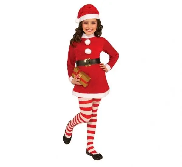 Całość stroju uzupełniają: kolorowe pończochy, świąteczna czapka i pasujący do szatki pasek.