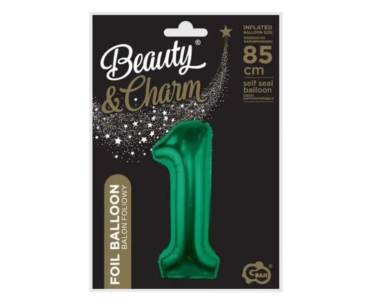 Balon foliowy B&C cyfra 1 zieleń butelkowa 85cm - Godan