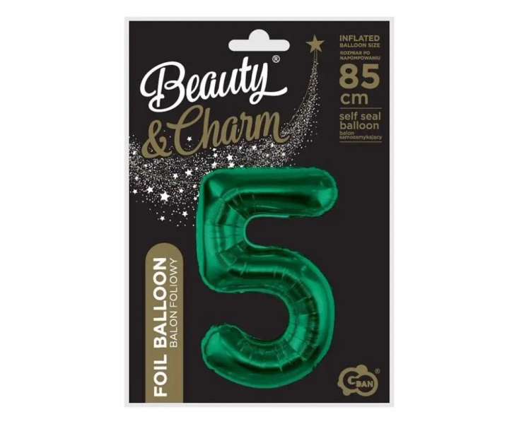 Balon foliowy B&C cyfra 5 zieleń butelkowa 85cm - Godan