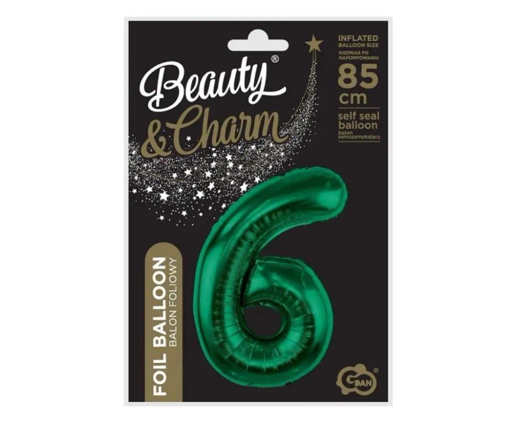Balon foliowy B&C cyfra 6 zieleń butelkowa 85cm - Godan