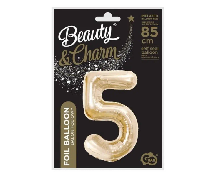 Balon foliowy B&C cyfra 5 szampański 85cm - Godan