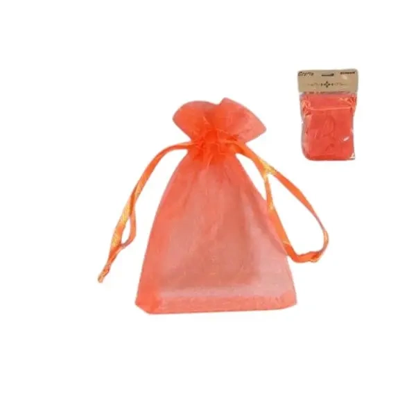 Woreczki z organzy w kolorze pomarańczowym o wymiarach 7x10cm (10 sztuk).