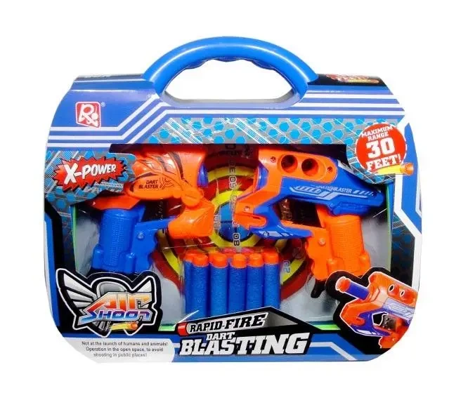 Podwójna zabawa z zestawem pistoletów na strzałki