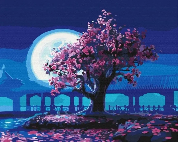Malowanie po numerach Drzewo wiśni w pełni 40x50cm