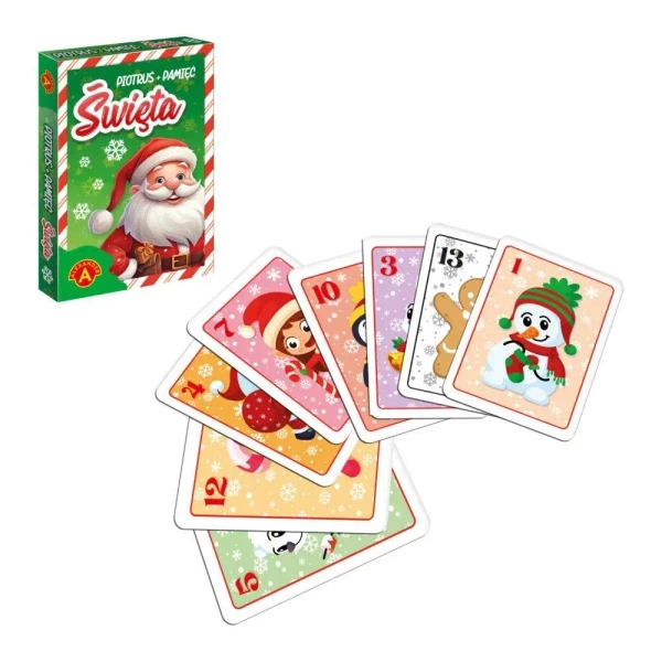 W skład zestawu wchodzi 25 kart inspirowanych świątecznymi motywami, które zapewniają możliwość zagrania w dwie klasyczne gry karciane: Piotruś i Pamięć. Uczestnictwo w tych rozgrywkach nie tylko ćwiczy zdolności obserwacyjne dzieci, lecz również promuje rozwój skojarzeń i uczy właściwych postaw społecznych. Ten zestaw jest doskonałym początkiem dla dzieci do odkrywania świata gier oraz miłym sposobem na wejście w świąteczną atmosferę.