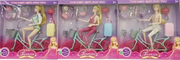 Lalka z rowerem i akcesoriami