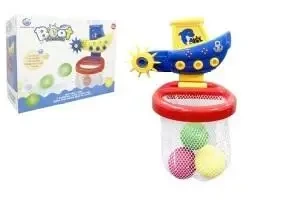 W skład zestawu wchodzi: łódka zdobiąca ścianę, kosz - cel dla celnych rzutów oraz 3 piłeczki, które mogą być używane do celowania do kosza, podczas gdy maluch bawi się w wodzie.