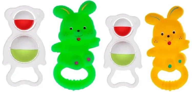Funkcjonalny komplet - łagodzący gryzak z grzechotką dla najmłodszych