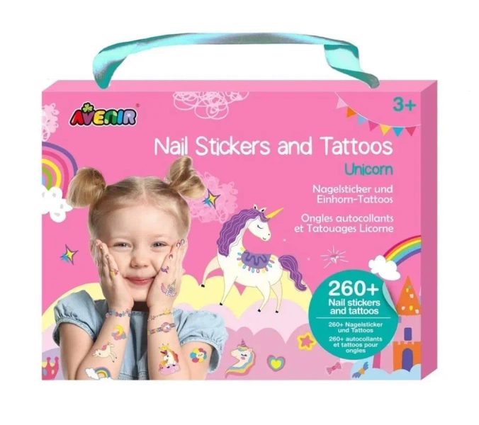 Prezentujemy państwu niezwykle atrakcyjny zestaw naklejek na paznokcie i tatuaży, które z pewnością wyróżnią się na tle innych. Zestaw obejmuje 3 spore arkusze, które łącznie zawierają aż 260 naklejek i tatuaży z uroczo wykonanymi jednorożcami. Są nie tylko wielobarwne, ale również niezwykle modne i zachwycające. Co ważne, zarówno aplikacja, jak i ewentualne usunięcie naklejek i tatuaży, jest niezmiernie proste.