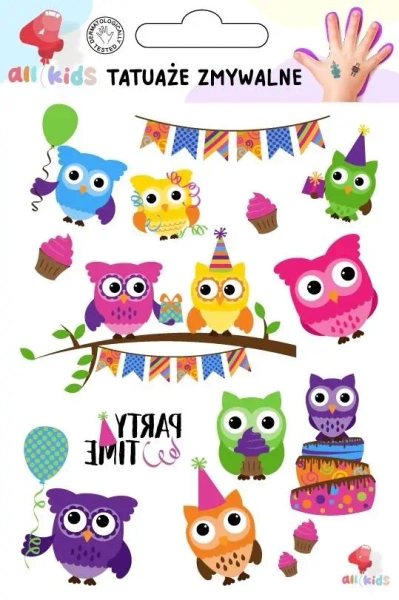 Tatuaże zmywalne dla dzieci Kolorowe sówki - All4Kids