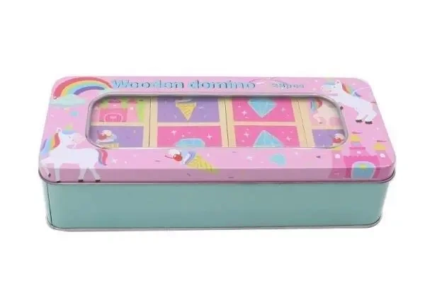 Przedstawiamy zestaw zręcznościowej gry domino z motywem jednorożców, składający się z 28 drewnianych klocków przechowywanych w estetycznym, metalowym pudełku. Wyjątkowość tego domino polega na tym, że na każdym elemencie widnieje obrazek - może to być jednorożec, sympatyczna księżniczka, kolorowa tęcza, a nawet smakowite lody. Zadaniem graczy jest stworzenie łańcuszka, łącząc obrazki na klockach w pary. Osoba, która jako pierwsza pozbędzie się wszystkich swoich klocków, zwycięża. Gra dzięki swojej prostej zasadzie jest doskonałym sposobem na miłe spędzenie czasu z dzieckiem.