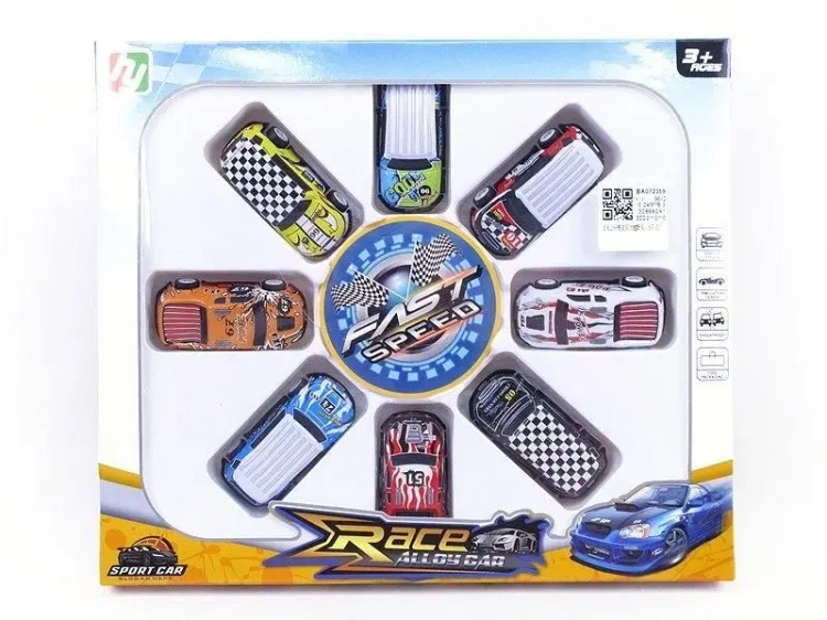 Zestaw zawiera osiem unikalnych modeli aut. Wysoka jakość wykonania gwarantuje trwałość produktu, a przez to długotrwałą zabawę. Wystarczy naciągnąć pojazd do tyłu, a potem puszczać - autko pojedzie do przodu z dużą prędkością!