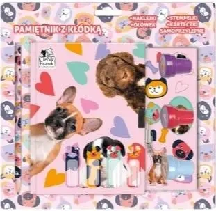 Pamiętnik Cleo i Frank Pies 40 z Kłódką i Stempelkami, w komplecie z przyborami od DERFORM