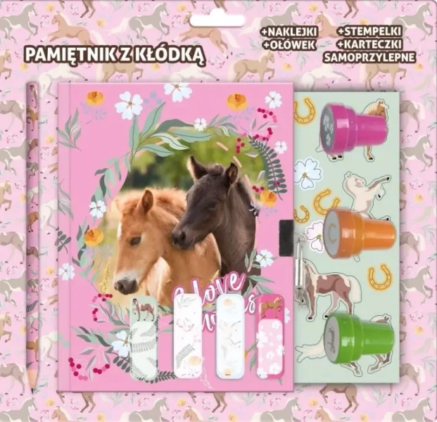 Pamiętnik z kłódką i stempelkami zestaw przyborów konie 24 - DERFORM