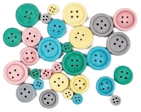 Zestaw dekoracyjnych guzików wytworzonych z drewna, prezentujących się w delikatnych kolorach pastelowych, jest dostępny w różnych wielkościach - 10 x 1 cm, 10 x 1,5 cm, 10 x 2 cm. Ilość guzików w jednym opakowaniu wynosi 30 sztuk.