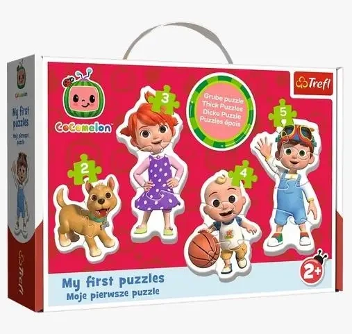 Te puzzle są częścią serii Moje pierwsze puzzle i składają się z 14 sztuk grubych elementów. Dzieci mogą układać pojedyncze obrazki z 2, 3, 4 lub 5 części. Puzzle z postaciami z Cocomelon są idealnym wyborem dla najmłodszych miłośników tych animacji, stworzone specjalnie z myślą o dzieciach, które ukończyły już swoje drugie urodziny.