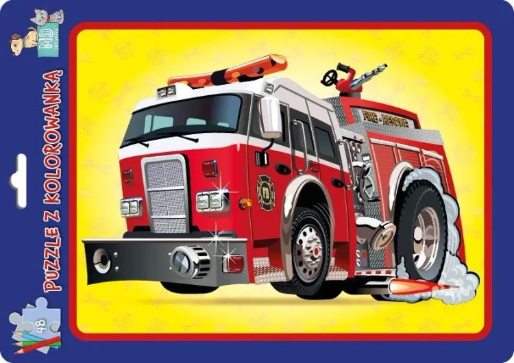 Puzzle w ramce z kolorowanką. Wóz strażacki - MD Creative