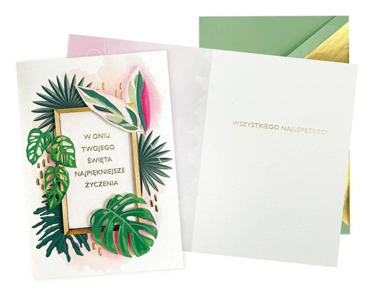 Karnet na urodziny z oryginalnymi zdobieniami w zestawie z kopertą