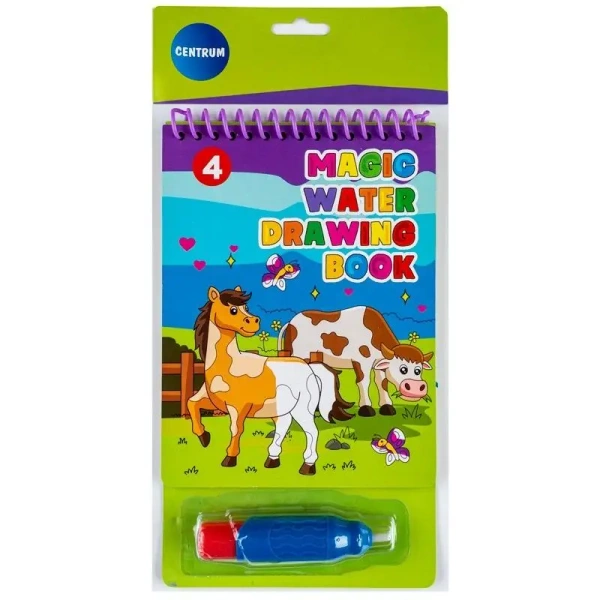 Komplet zawiera unikalny pisak do napełniania wodą, a książka do kolorowania zawiera 5 ilustracji i literki. Co ciekawe, po niejakim czasie, kolorowanka powraca do swojego oryginalnego stanu, sprzed pokolorowania. Optymalny rozmiar kolorowanki to 13,7 x 18,3 cm.