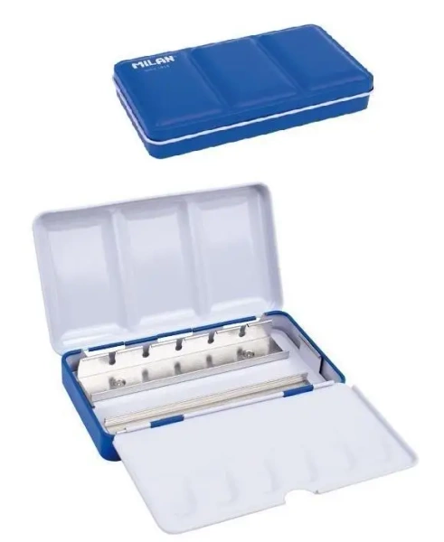 Szukasz wygodnego miejsca na przechowywanie Twoich farb akwarelowych? Zapoznaj się z naszą metalową kasetką, która posiada miejsce na 12 kostek farb. Należy jednak zauważyć, że produkt nie zawiera żadnej zawartości - dostępna jest tylko kasetka.