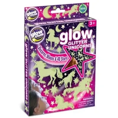 Niezwykle błyszczące jednorożce z serii Pretty Glow Glitter stanowią idealne urozmaicenie wystroju każdej sypialni. Wykorzystaj do tego 6 przepięknych jednorożców oraz 43 wyjątkowo trwałe plastikowe gwiazdki i księżyce, które znajdują się w zestawie. To błyszczące kompozycje z jednorożców, gwiazd i księżyców, które nie tylko staną się ciekawym elementem dekoracyjnym, ale przede wszystkim niesamowicie rozbłysną, gdy tylko zagasisz światło! Zachwyć się jak pięknie świecą!
